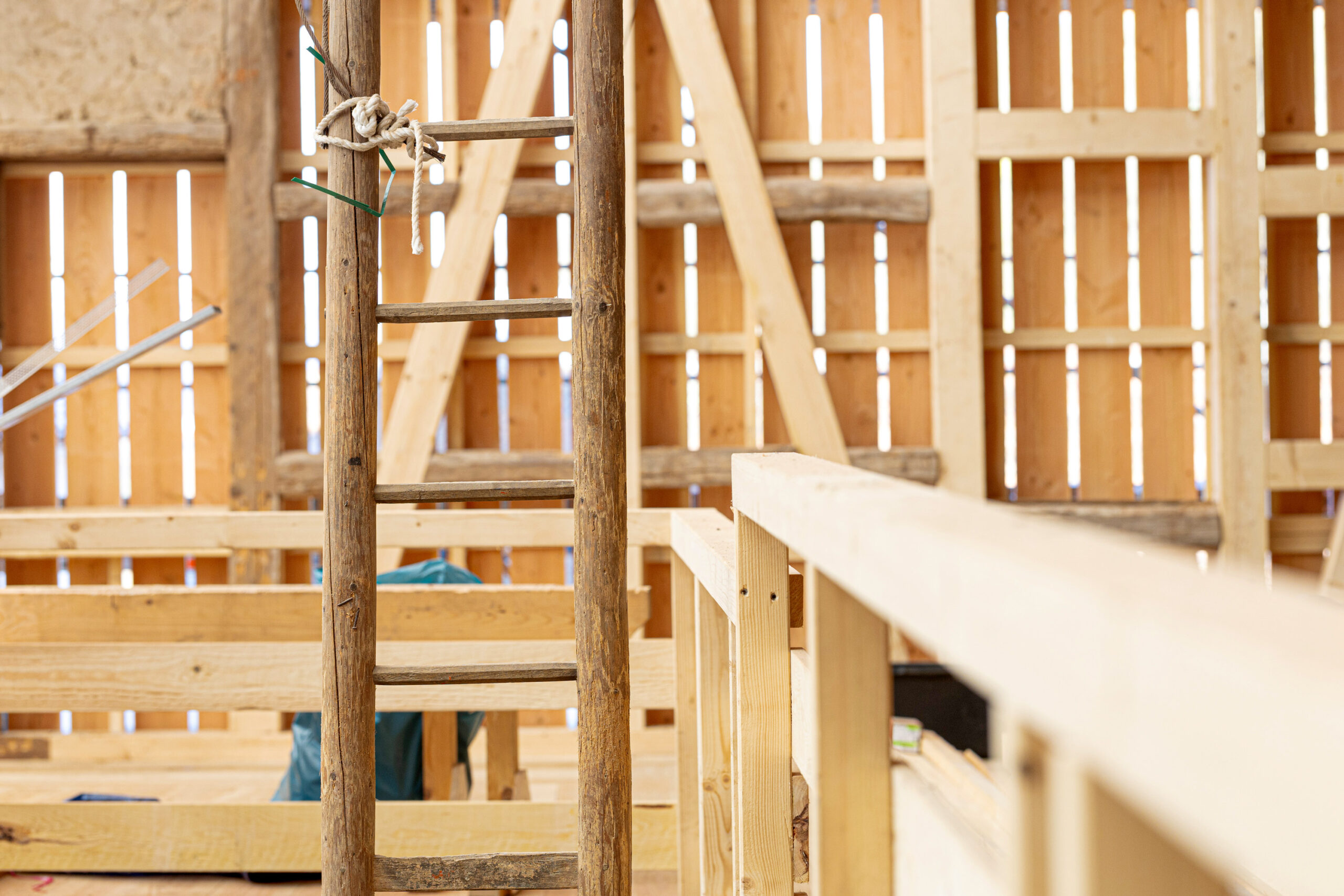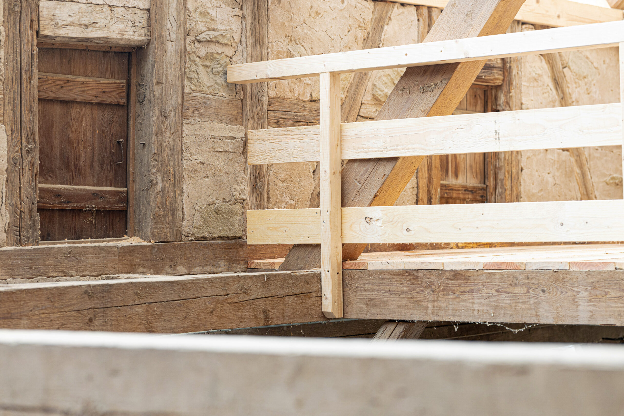 Die Zimmerei A. Lang GmbH verantwortet die fachgerechte Umsetzung aller zentralen Holzbauarbeiten – immer mit dem Anspruch, historische Formen zu respektieren, geschwächte Bauteile zu ertüchtigen und neue Elemente so einzufügen, dass Alt und Neu eine stimmige Einheit bilden.